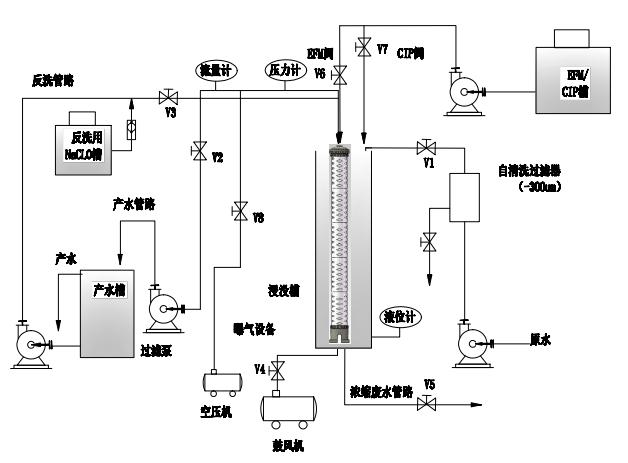 浸沒式膜過濾系統(tǒng)采用開放式外壓超濾膜組件,將其完全浸沒于膜池之中,通過液位壓差結(jié)合抽吸泵負(fù)壓抽吸產(chǎn)水,以膜組件取代傳統(tǒng)混凝、沉淀、過濾等工藝過程,廣泛應(yīng)用于飲用水安全、污水處理廠提標(biāo)、河道冶理、再生水資源、工水廢水回用、海水淡化等領(lǐng)域。